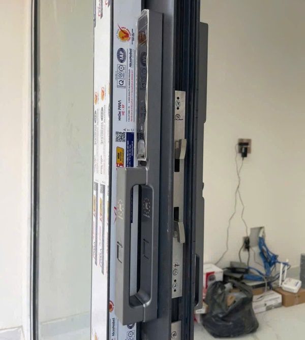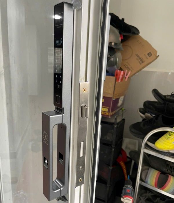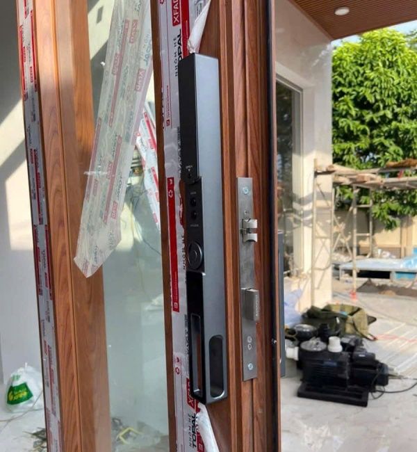 Khoá cửa nhôm nhận diện khuôn mặt, và tĩnh mạch lòng bàn tay. Dùng cho cả cửa mở quay (dùng ổ chốt thẳng) và cửa lùa (dùng ổ chốt móc). Hai mặt khóa đều chống được nước mưa