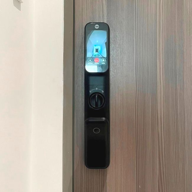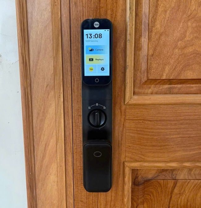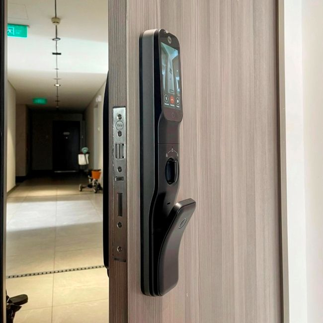 Khóa cửa mở bằng nhận diện khuôn mặt và tĩnh mạch lòng bàn tay. Có camera cho chuông hình và đàm thoại với khách qua điện thoại