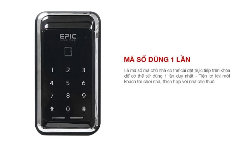 Mã số dùng 1 lần là tính năng vô cùng tiện lợi trên sản phẩm khóa cửa điện tử Epic ES S100D. Người dùng có thể sử dụng mã số này để mở cửa 1 lần duy nhất rồi hết hiệu lực