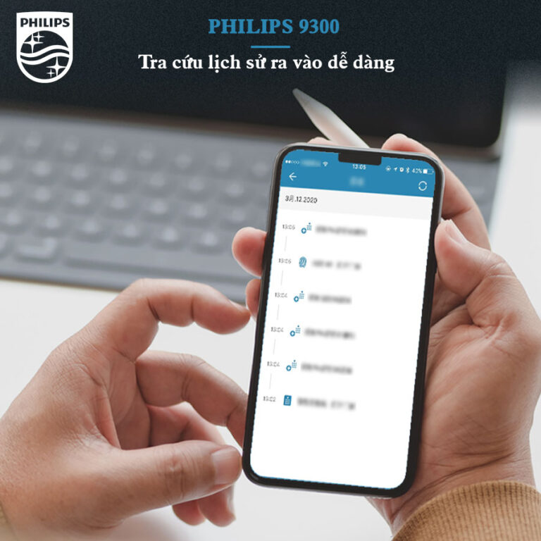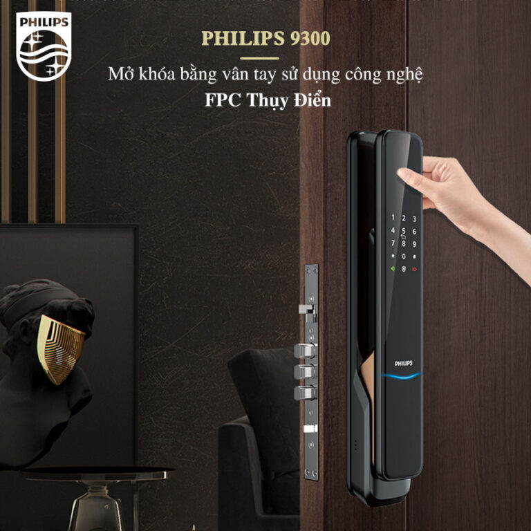- Philips 9300 đăng kí được: 100 vân tay, 100 thẻ từ, 10 mã số. Có sẵn 2 thẻ từ, 2 chìa cơ