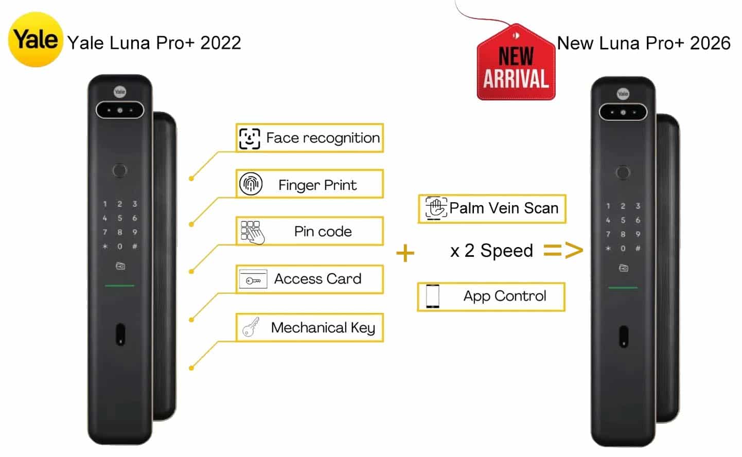 Yale New Luna Pro+ là phiên bản nâng cấp và thay thế hoàn toàn cho phiên bản Yale Luna Pro+ cũ. Đồng nghĩa với model Yale Luna Pro+ sẽ không còn trên thị trường. Với các cải tiến như sau: