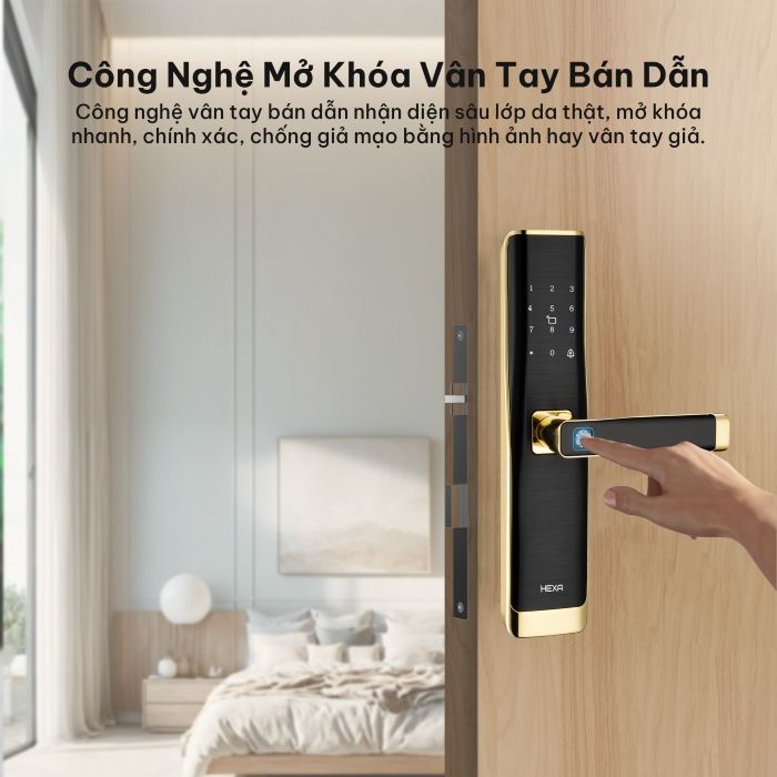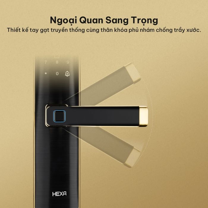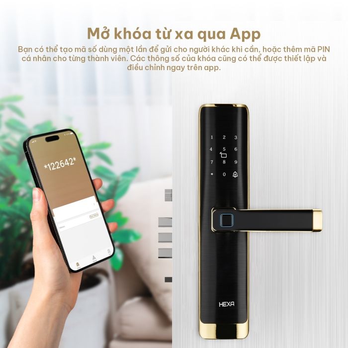 - Mở bằng: vân tay, thẻ từ, mã số, chìa cơ, mobile app wifi Hexa