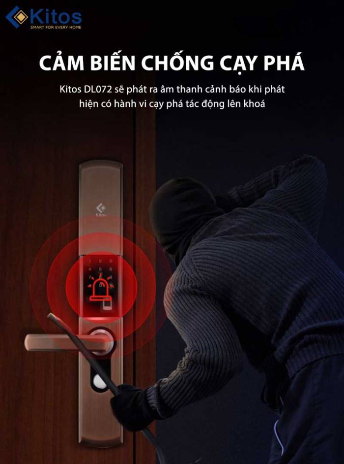 Kitos KT DL072 được trang bị 4 phương thức mở khóa: vân tay, mã số, thẻ từ, chìa cơ. Cùng đầy đủ các tính năng cảnh báo và an toàn