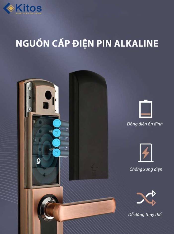 - Nguồn điện: 6v pin AA alkaline, dùng được khoảng 1 năm (trung bình mở 10 lần/ ngày); Nếu để hết pin thì dùng pin sạc đấu bên ngoài qua cổng micro USB để mở khóa