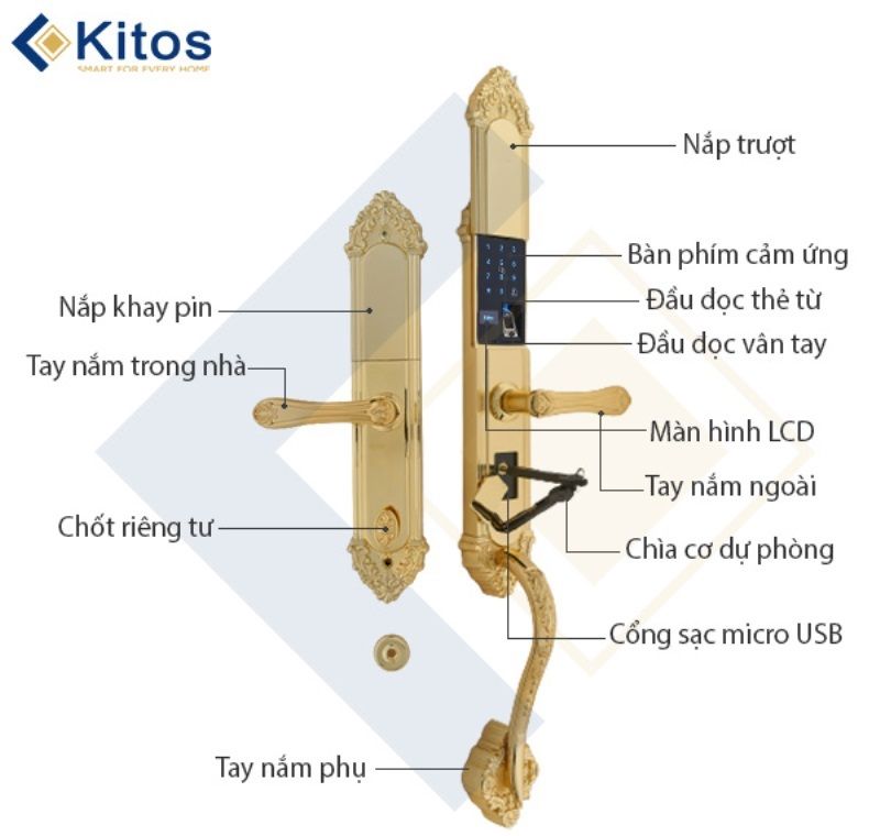 Kitos KT-C800 là siêu phẩm đến từ thương hiệu Kitos với điểm nhấn đầu tiên đó là bề mặt khóa được mạ một lớp vàng 24k sáng bóng, sang trọng, đẳng cấp.