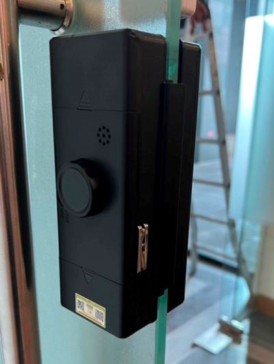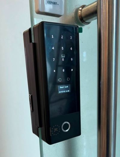Khóa điện tử cửa kính có mở từ xa. Có 2 phiên bản: bản thường, và bản có thêm remote