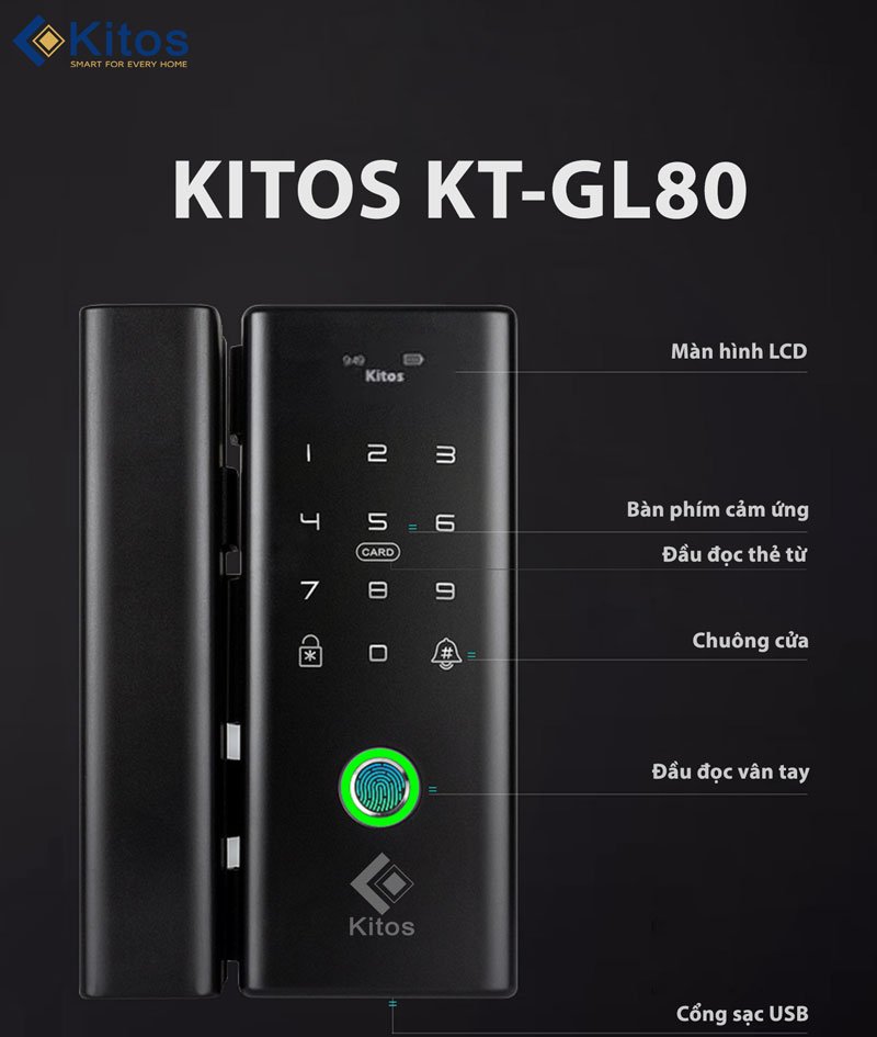 Kitos KT-GL80 là mã khóa cửa kính cao cấp của Kitos với kiểu dáng sang trọng và những tính năng ưu việt giúp sử dụng tiện lợi và an toàn. Khóa được lắp đặt đơn giản mà không cần phải khoan đục cửa