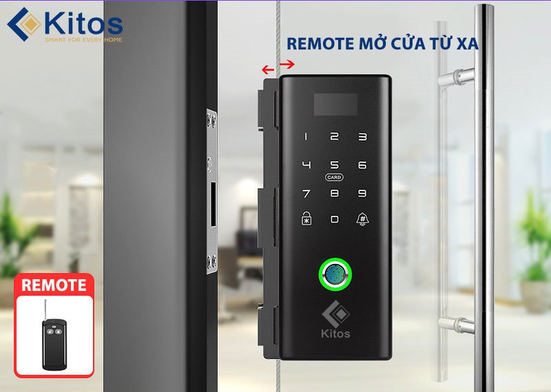 Kitos KT-GL80 có mở khóa bằng: vân tay, mã số, thẻ từ. Nếu cần, gia chủ có thể mua thêm để dùng điều khiển từ xa (remote)
