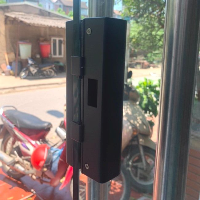 Khóa dùng được cho cả cửa kính cường lực mở xoay và mở lùa vì dùng dạng chốt móc. Độ dày kính phù hợp là 8mm- 12mm