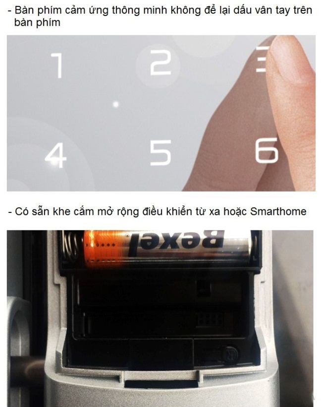 - Mở bằng: vân tay, mã số. Mở rộng: remote