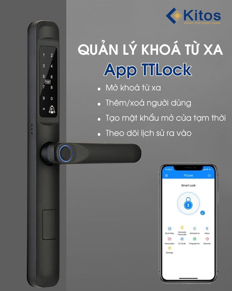 Không chỉ là một chiếc khóa, Kitos ALX5 Pro còn là người quản gia thông minh, giúp bạn kiểm soát ngôi nhà từ xa dễ dàng thông qua ứng dụng trên điện thoại TTLock