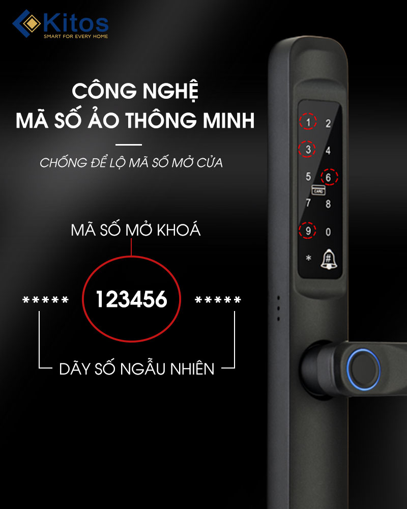 Kitos ALX5 Pro giữ bí mật tuyệt đối với tính năng mật mã ảo. Bạn có thể nhập một dãy số dài bất kỳ trước hoặc sau mật mã chính, khiến người đứng bên cạnh không thể đoán được mật khẩu thật.