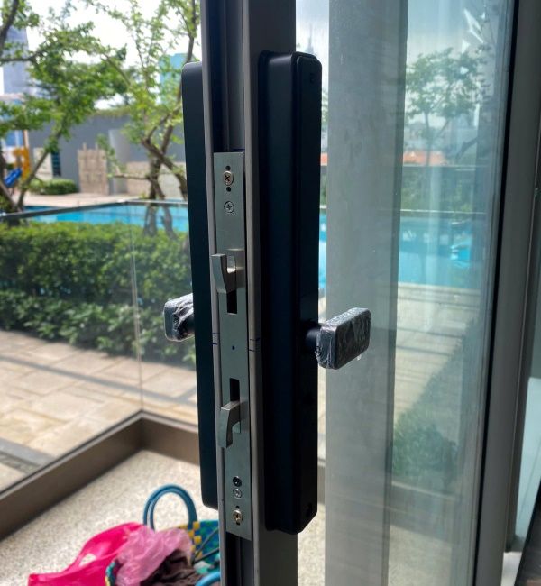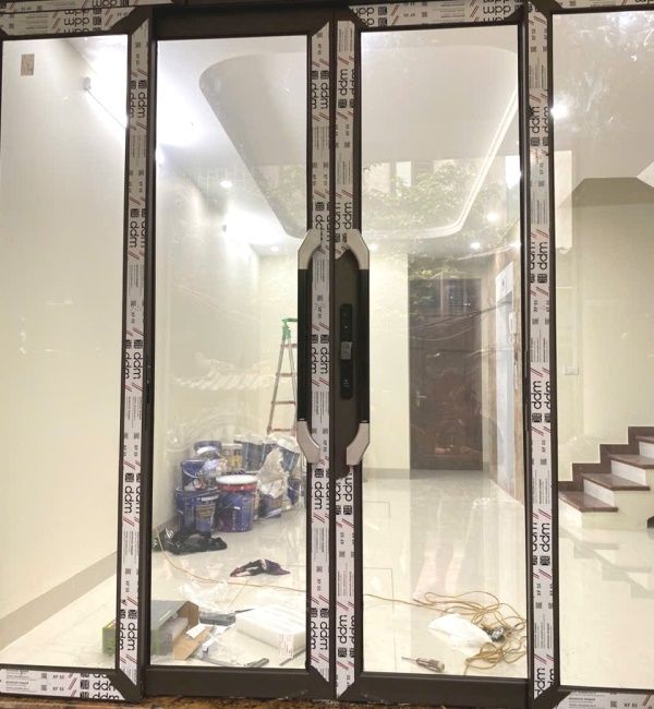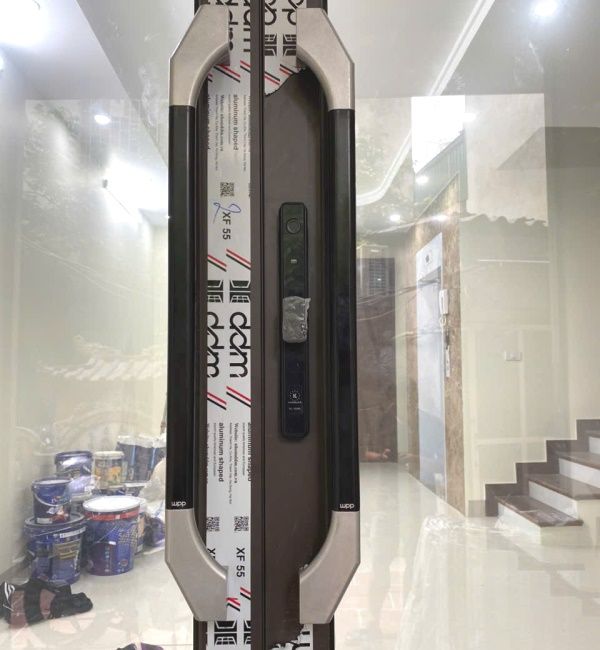 Khóa vân tay cửa nhôm mở lùa, có mở bằng điện thoại. Chống nước tuyệt đối. Có 2 màu là đen và bạc