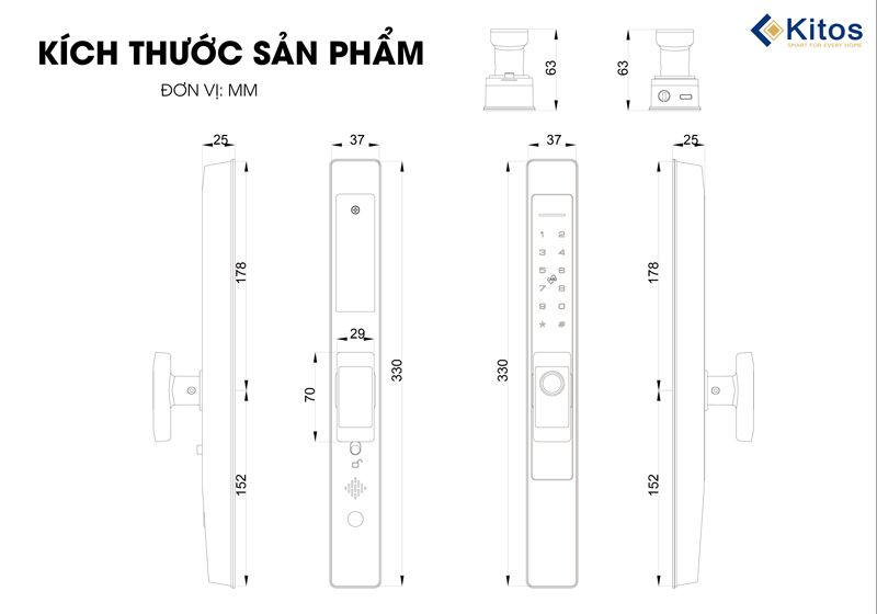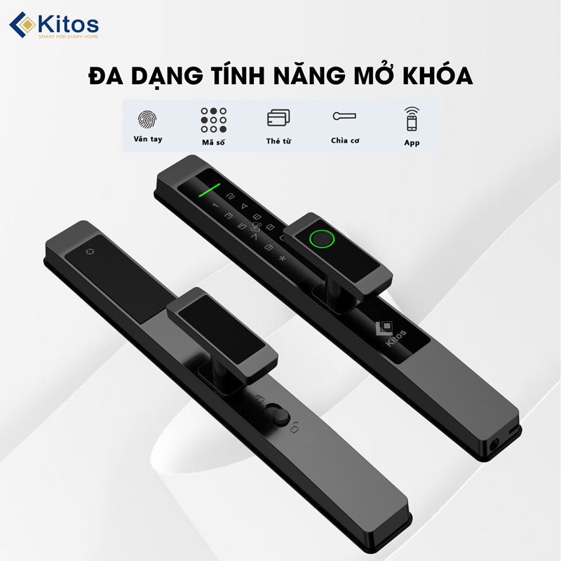 Bên cạnh đó, với khả năng chống chịu nước có thể lắp đặt được ở các không gian cửa ngoài trời và việc trang bị các tính năng mở khóa thông minh, quản lí từ xa trên app điện thoại, Kitos ALX1 Pro chắc chắn sẽ là lựa chọn hàng đầu cho hệ cửa nhôm trượt.
