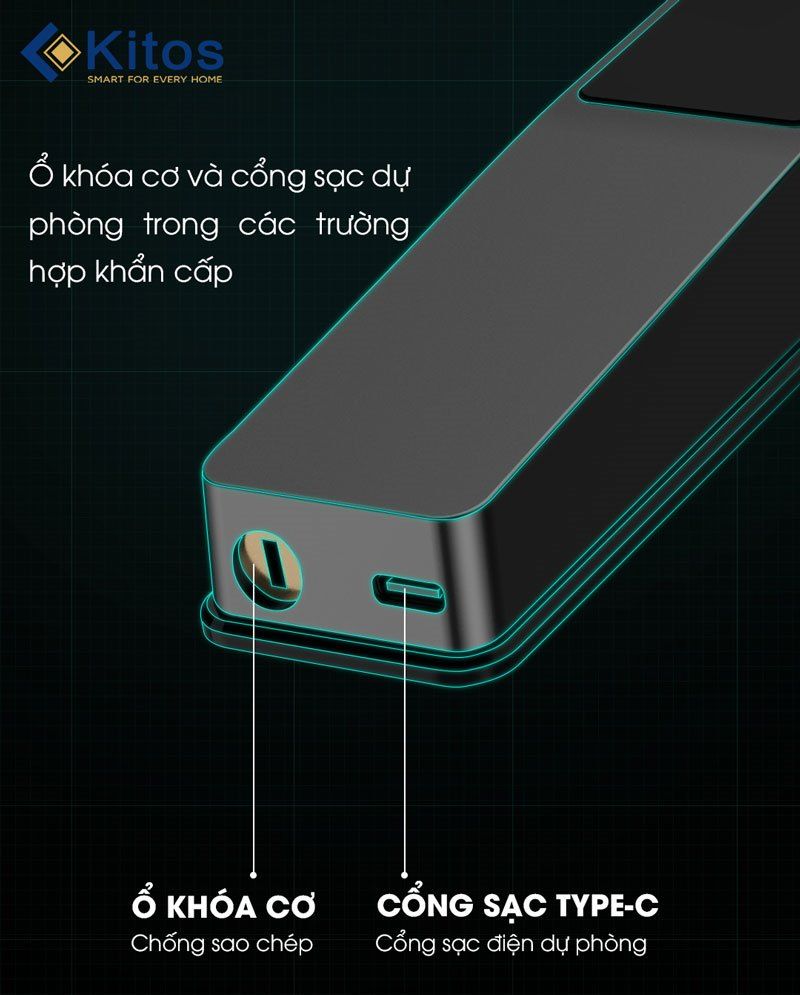 Trường hợp khóa Kitos ALX1 bị hết sạch pin mà chưa kịp thay, bạn hoàn toàn có thể cấp nguồn tạm thời cho khóa bằng cách cắm sạc dự phòng từ cổng sạc Type-C bên ngoài khóa, tránh tình trạng bị mắc kẹt ở bên ngoài.