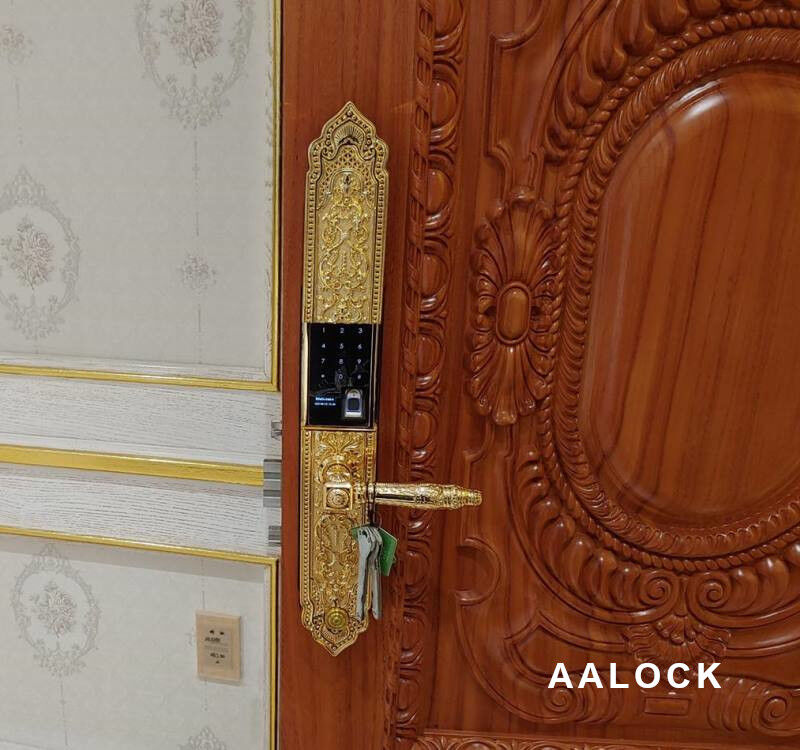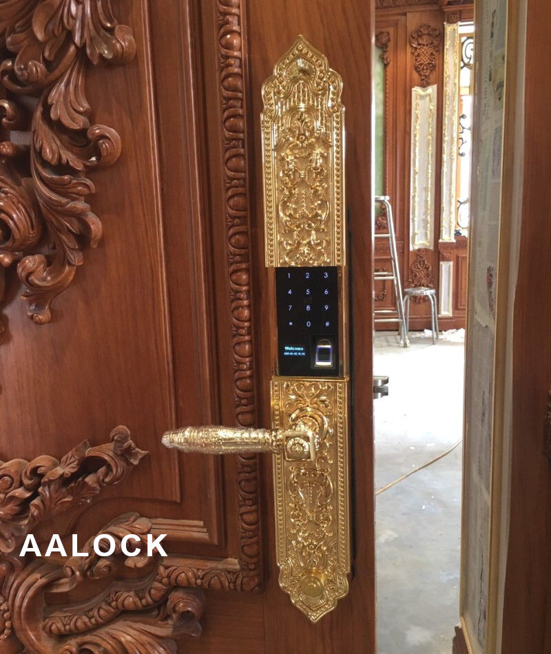 Khóa làm bằng hợp kim kẽm mạ vàng 24K. Có mở từ xa bằng điện thoại