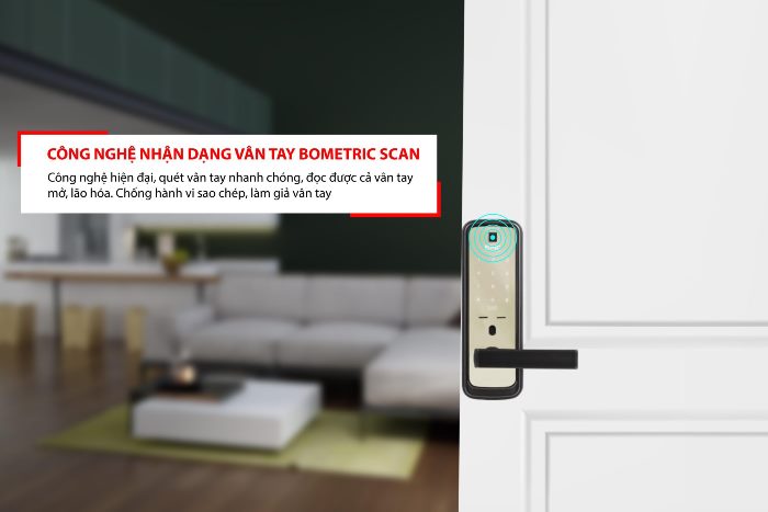 Công nghệ quét vân tay Biometric Scan giúp mở cửa nhanh chóng chỉ chưa tới 0,01 giây với độ chính xác lên tới 99,9%. Công nghệ này cũng giúp quét được vân tay mờ, vân tay lão hóa, chống sao chép, làm giả vân tay