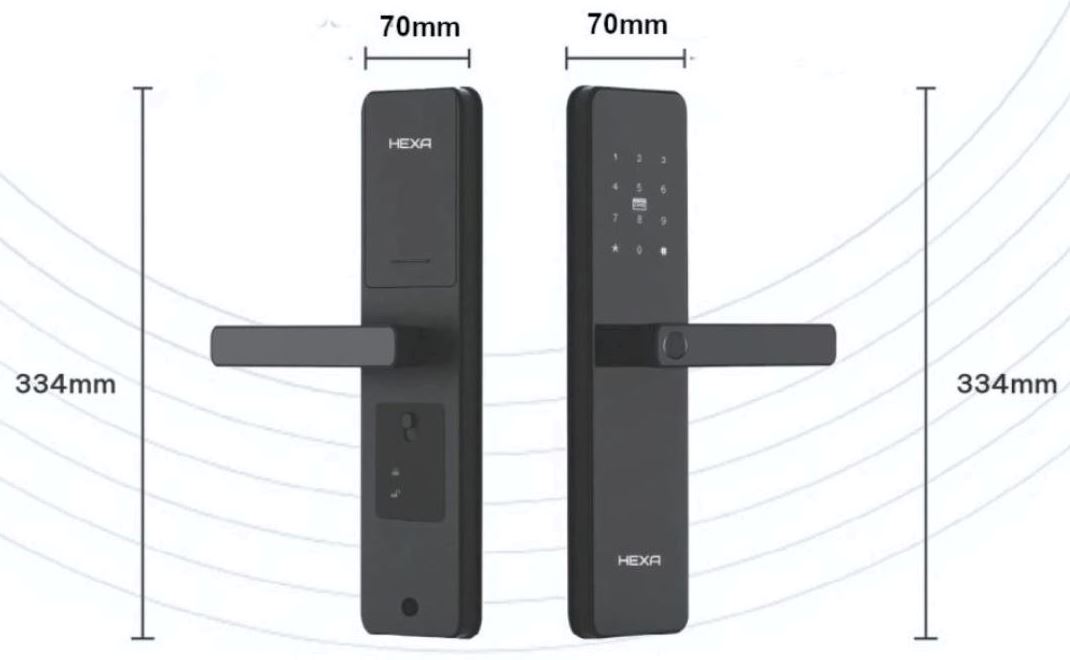 Không chỉ nổi bật bởi tính năng, khóa thông minh Hexa HX12 còn thu hút người dùng với ngoại hình thanh lịch và hiện đại. Thân khóa được phủ kính cường lực chống trầy xước, kết hợp màn hình LED hiển thị rõ bàn phím số. Tay gạt truyền thống tích hợp cảm biến vân tay ngay trên tay cầm, giúp người dùng mở cửa chỉ với một thao tác tự nhiên vừa nhanh chóng, vừa đảm bảo trải nghiệm sử dụng tiện lợi và an toàn tuyệt đối.
