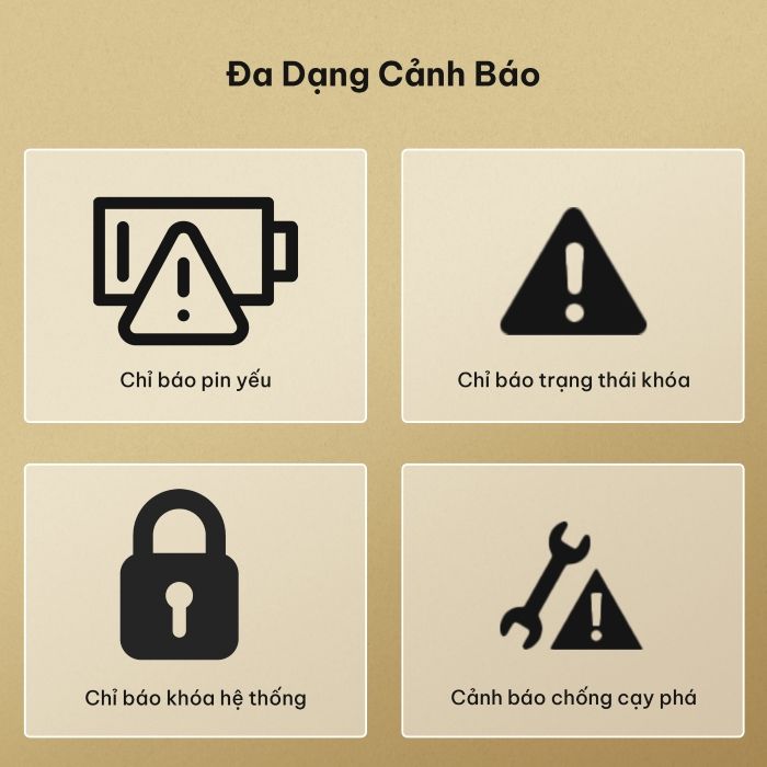Khóa vân tay Hexa P300 được tích hợp hệ thống cảnh báo chủ động, nhận diện và phản ứng nhanh trước những nguy cơ bất thường như: