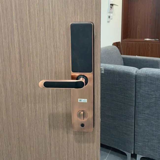 - Mở bằng: vân tay, thẻ từ, mã số, chìa cơ, mobile app bluetooth TTLock. Mở rộng: remote, app wifi