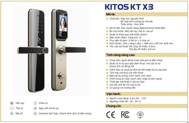 Khóa Kitos KT-X3 là phiên bản cải tiến mạnh mẽ của thương hiệu Kitos cho phân khúc tầm trung. Khóa được tích hợp thêm chuông cửa và camera . Đây chính là điểm vượt trội so với các sản phẩm cùng phân khúc.