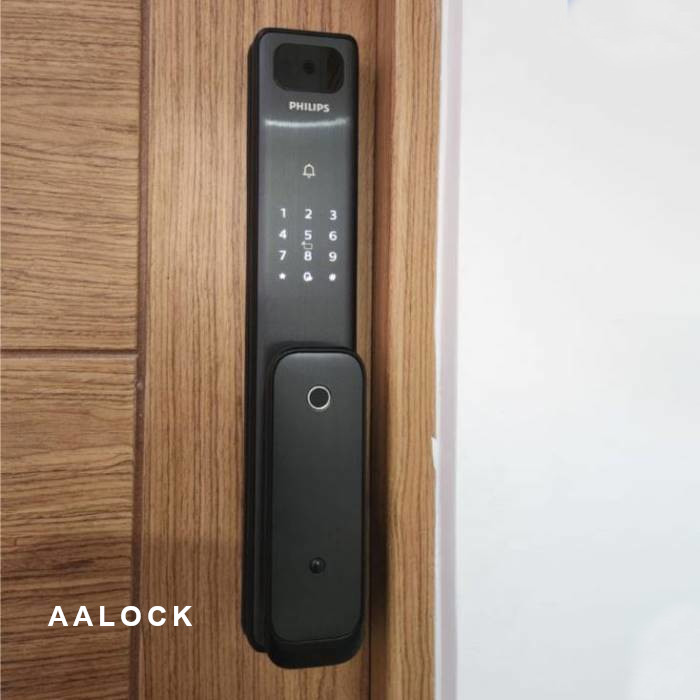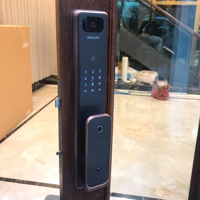 - Philips Alpha-VP-5HWS có mở khóa bằng: vân tay, thẻ từ, mã số, chìa cơ. App mobile qua wifi để cấp mật khẩu từ xa và video call