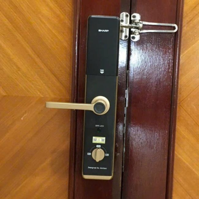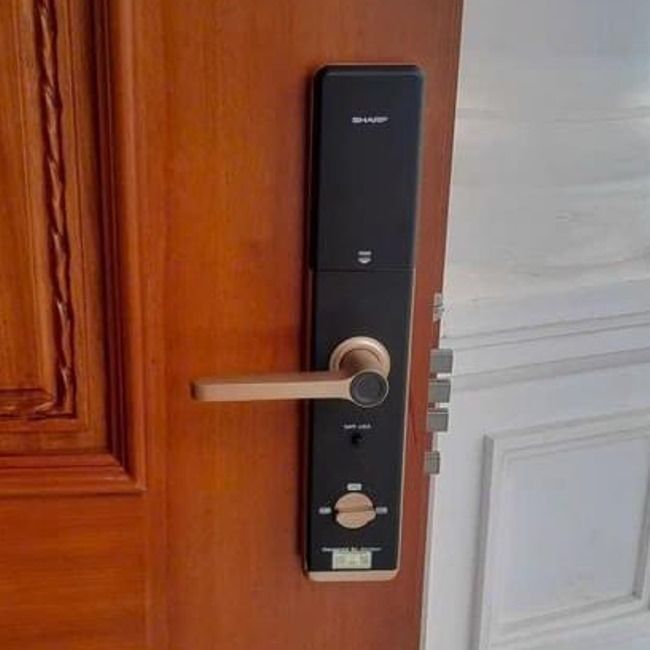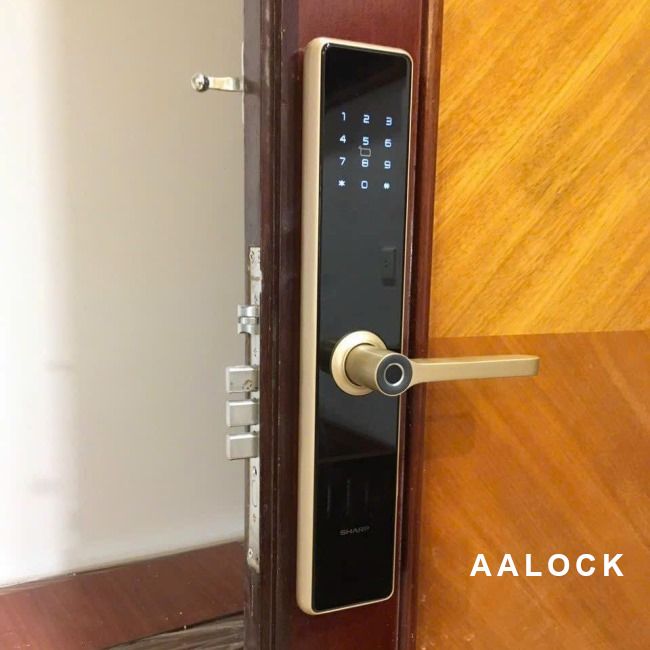 Sharp A1-B Vàng (gold) là khóa cửa cao cấp thương hiệu Nhật Bản. Khóa có tay cầm phủ kim loại hoàn toàn, kiểu dáng đẹp và đầy đủ tính năng.