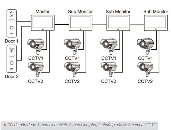 - Độ dài lắp đặt tối đa: Từ điện thoại sảnh tới bộ phân chia: 150m