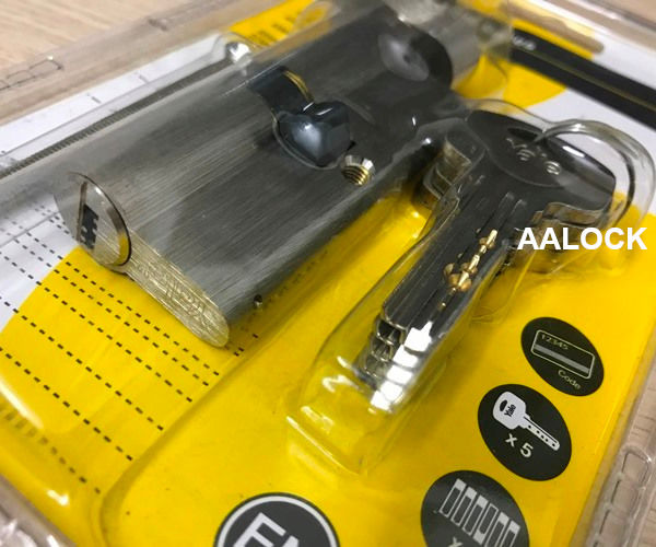 - Chìa khóa: 5 chìa vi tính bằng đồng mạ nikel. Loại chìa hiện đại, rất tinh vi, hai mặt chìa giống nhau- cắm chiều nào cũng được- nên thuận tiện khi mở khóa