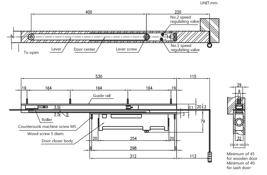 - Cho cửa rộng: 850- 950mm, trọng lượng tối đa 65Kg